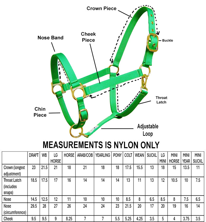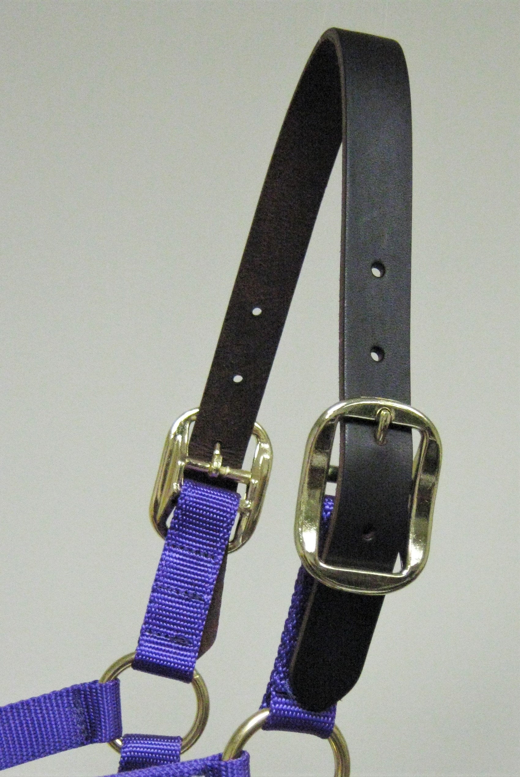 Breast cancer awareness designed halters are made of premium nylon webbing with printed grosgrain ribbon sewn on. If you don't see a color of halter you like please send us a message we have many colors to choose from. All halters have an adjustable crown and nose. There is a throat snap and all hardware is brass plated. Leather crown option available.