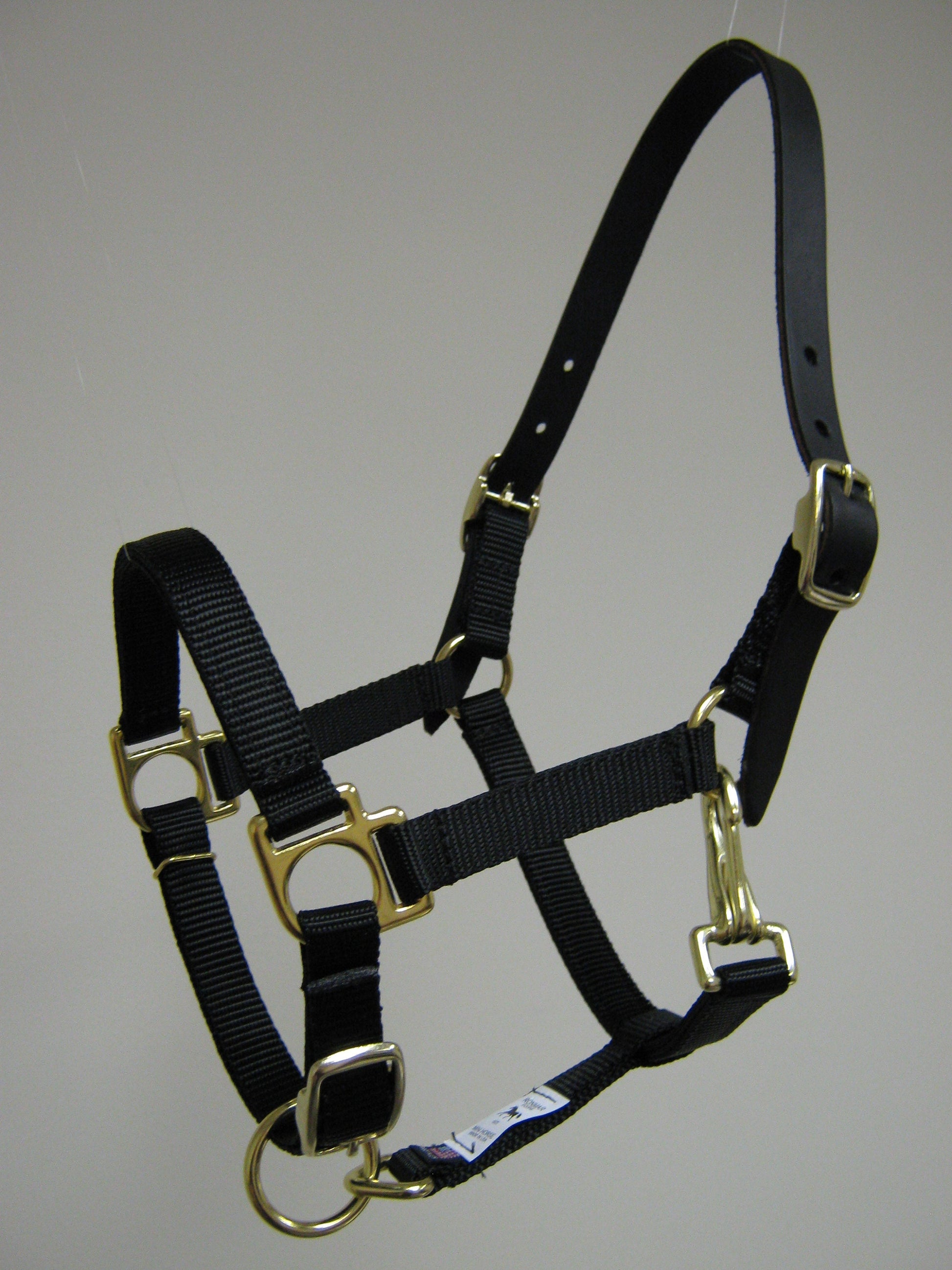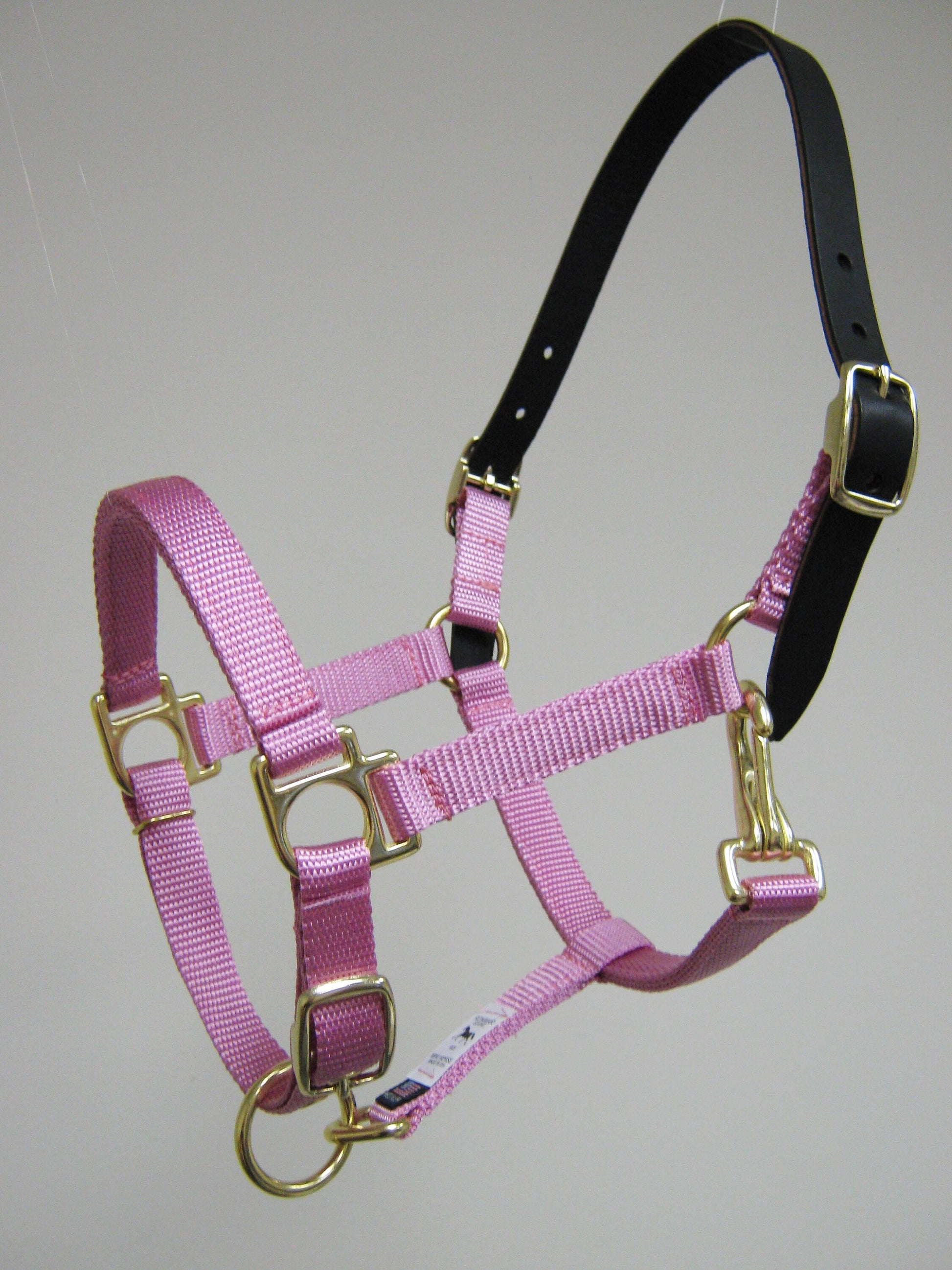 Leather crown halters are made of premium nylon webbing with a black leather breakaway crown. There are five adjustments on each side of the leather crown and nose also has five adjustments.
